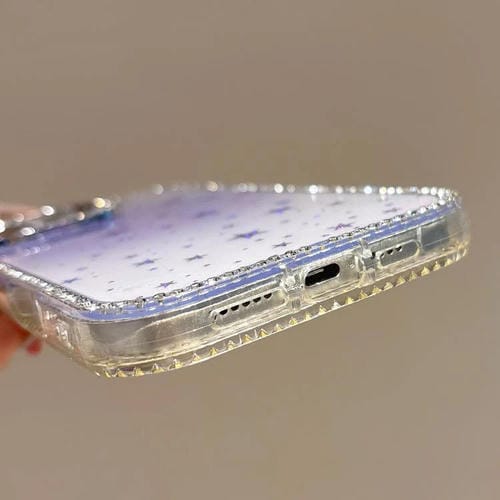 1. Borde de diamantes de imitación de doble cara para un brillo máximo: La funda cuenta con diamantes de imitación incrustados en ambos lados del marco, que captan la luz desde todos los ángulos para una apariencia ultra glamurosa.