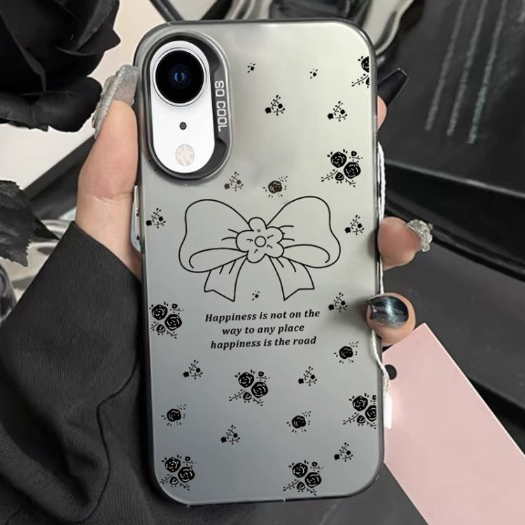 Funda híbrida TPU para iPhone Xr con pintura plateada (Lazo Floral Negro)