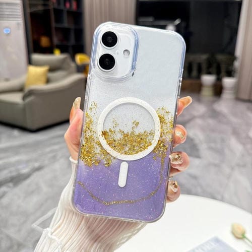 Funda híbrida de TPU transparente MagSafe dorada para iPhone 17 (morada)