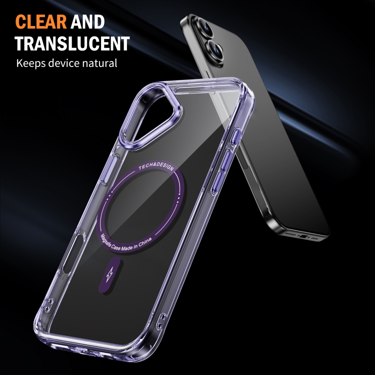 Funda híbrida TPU y PC con Airbag y Magsafe para iPhone 16 Plus (Morado Transparente)
