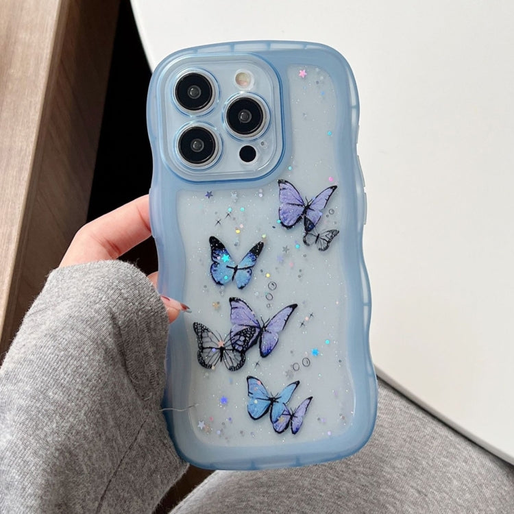 Funda híbrida TPU y PC iPhone 16 Pro Max borde ondulado mariposa (Azul)