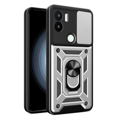Funda Híbrida de TPU y PC con Diseño de Cubierta Deslizante para Cámara Xiaomi Redmi A1+ (Plateada)