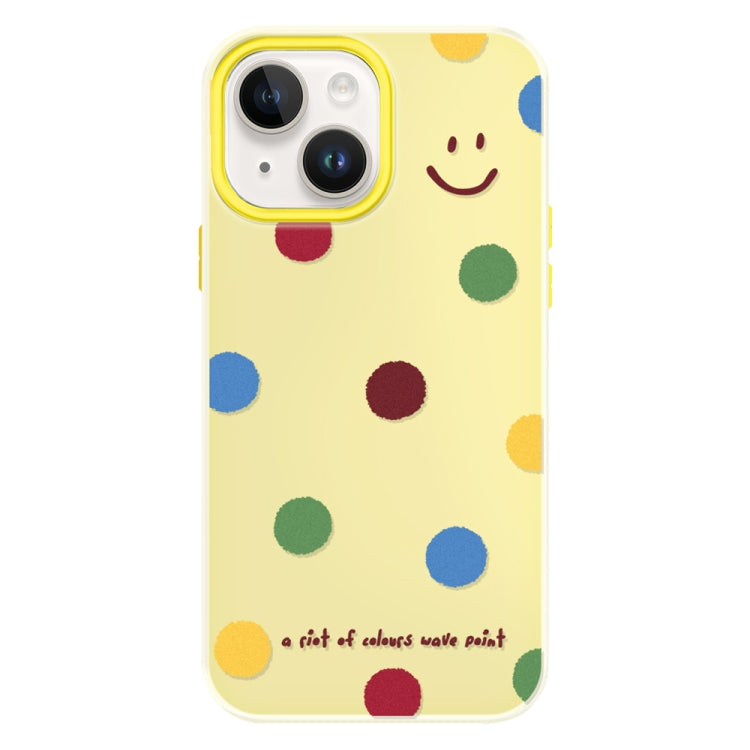 Funda híbrida TPU y PC iPhone 15 Tacto sedoso (Sonrisa de lunares en Amarillo)