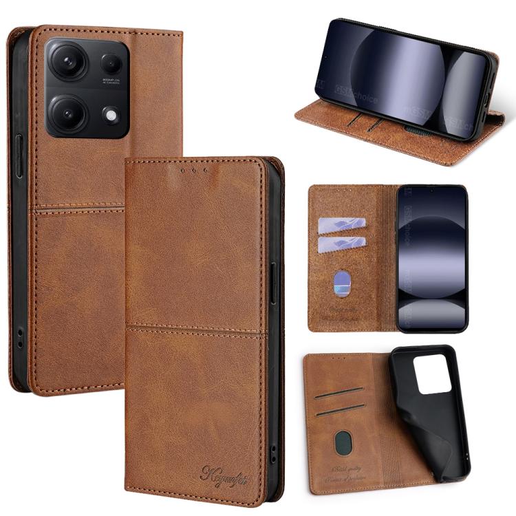 Funda magnética de cuero con textura de vaca para Redmi Note 14S 4G (marrón claro)