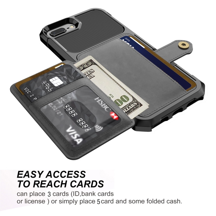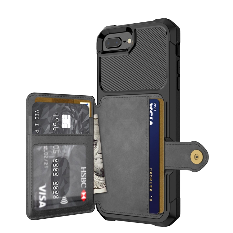 Funda Magnética Bolsa Tarjeta Cartera iPhone 8 Plus 7 Plus 6 Plus (Negro)