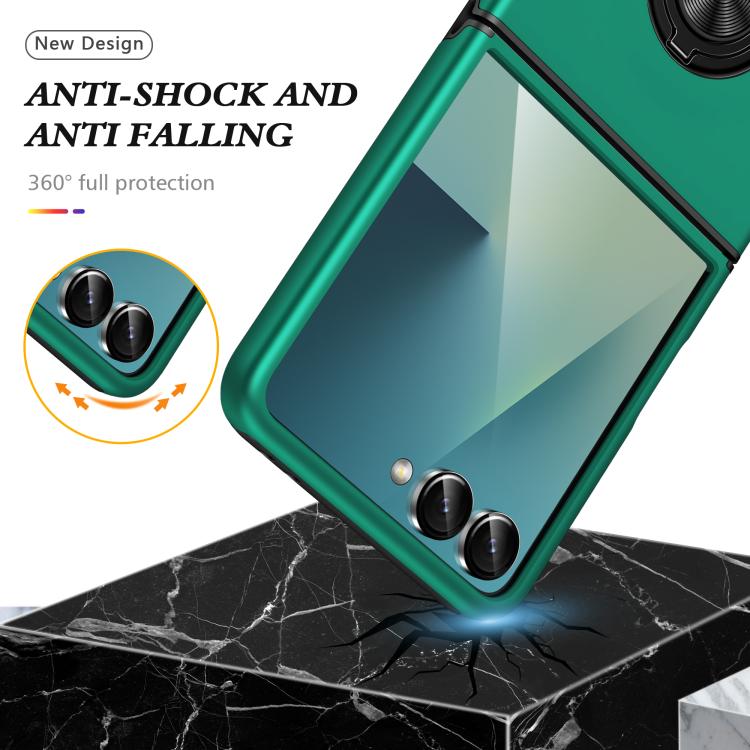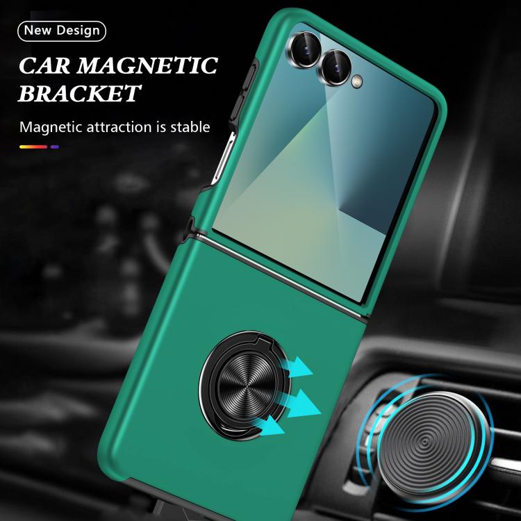 Funda magnética de PC + TPU para Samsung Galaxy Z Flip7 5G con anillo invisible (verde oscuro)
