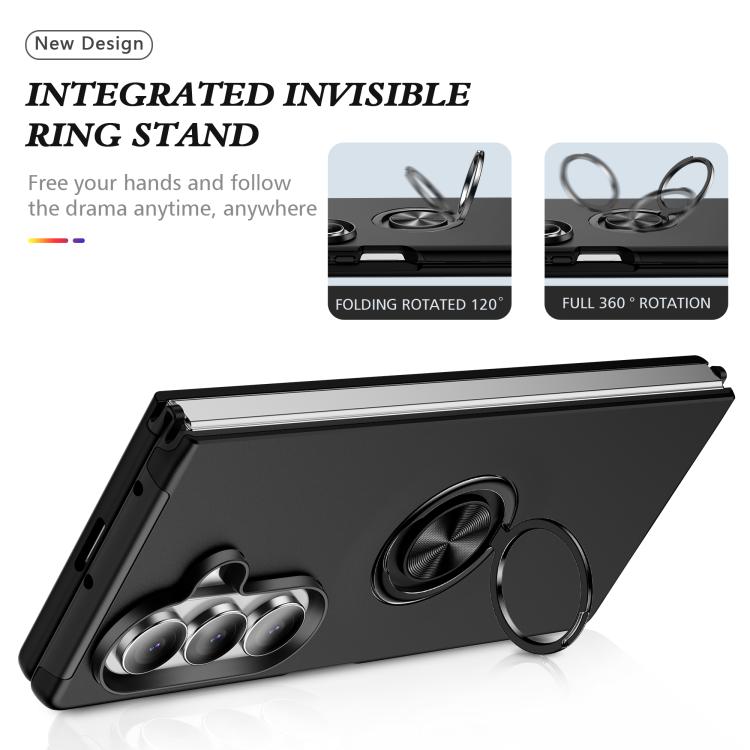 Funda magnética de PC + TPU para Samsung Galaxy Z Fold7 5G con soporte de anillo invisible (negro)