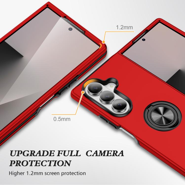 Funda magnética de PC + TPU para Samsung Galaxy Z Fold7 5G con soporte de anillo invisible (roja)