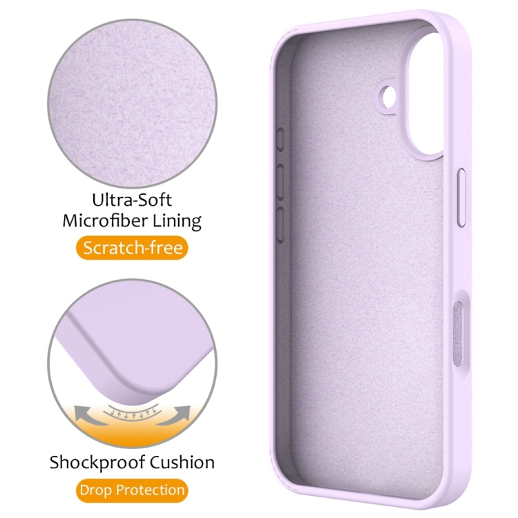 Funda Magnética de Silicona Líquida Magsafe para iPhone 16 Plus con Soporte para Anillo (Morado Lila)