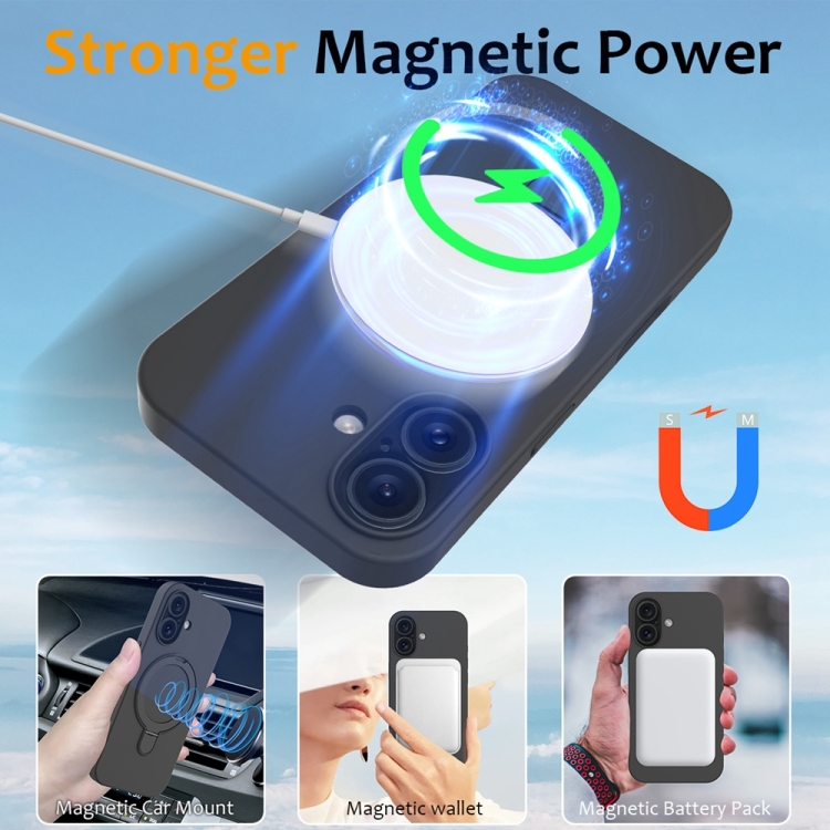 Funda Magnética de Silicona Líquida Magsafe para iPhone 16 Plus con Soporte para Anillo (Negro Carbón)