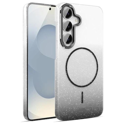 Funda MagSafe a prueba de golpes para Samsung Galaxy S25 5G con purpurina dorada y degradado (negro)