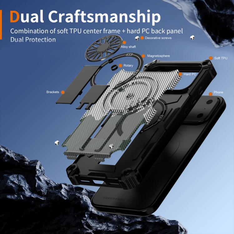 Funda MagSafe con eje giratorio y soporte de camuflaje para iPhone 17 (gris fibra de carbono)