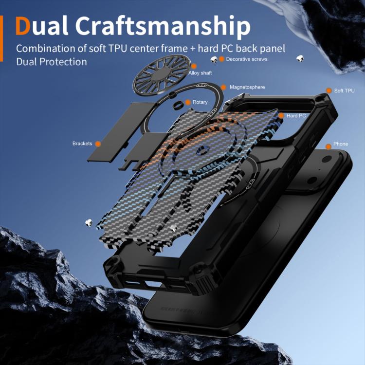 Funda MagSafe con soporte giratorio y camuflaje para iPhone 17 (fibra de carbono arcoíris)