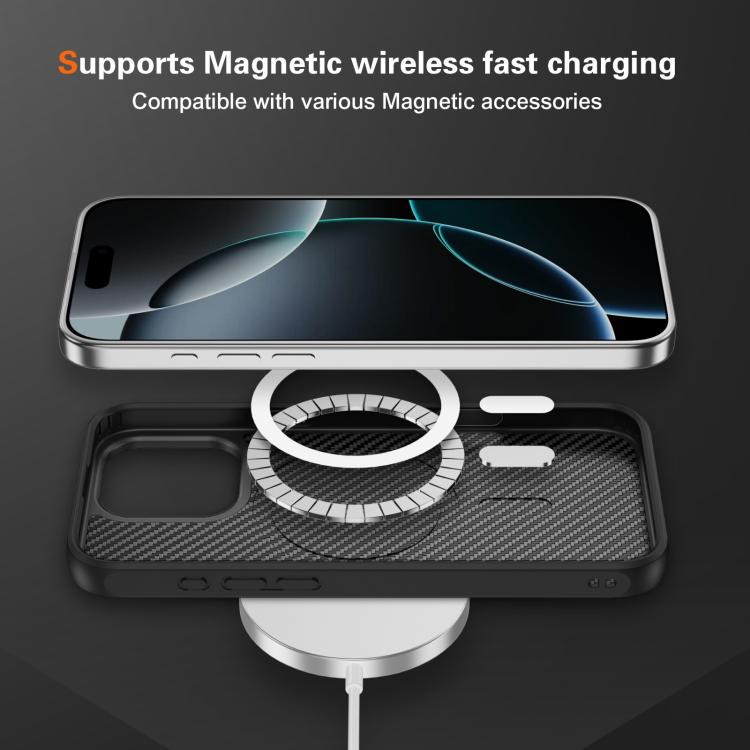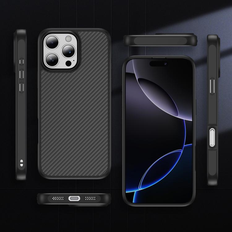 Funda MagSafe con textura de fibra de carbono y tacto suave para iPhone 16 Pro (negra)