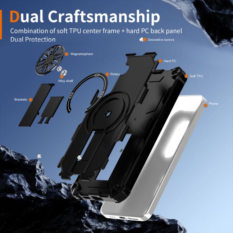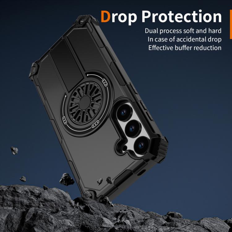 Funda MagSafe para Samsung Galaxy S24+ 5G, a prueba de golpes, con soporte metálico y eje (negro)