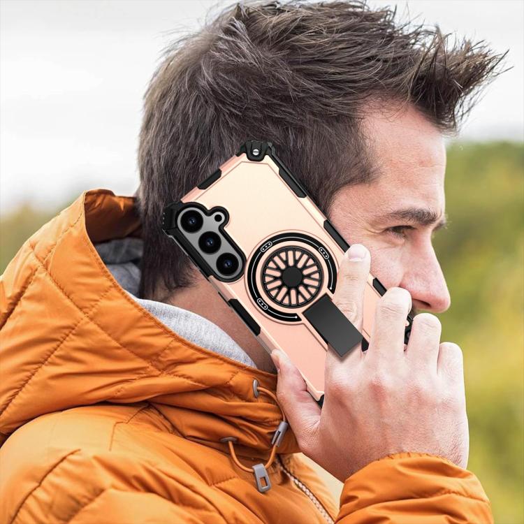 Funda MagSafe para Samsung Galaxy S24+ 5G con soporte metálico, a prueba de golpes y eje (oro rosa)