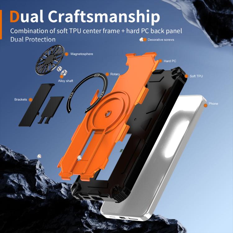 Funda MagSafe para Samsung Galaxy S24+ 5G con soporte metálico y protección contra golpes (naranja)