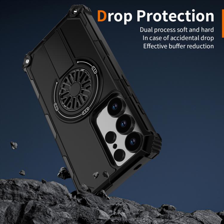 Funda MagSafe para Samsung Galaxy S24 Ultra 5G, a prueba de golpes, con soporte metálico y eje (negro)