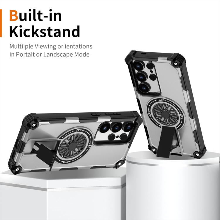 Funda MagSafe para Samsung Galaxy S24 Ultra 5G, a prueba de golpes, con soporte metálico y eje (plateada)
