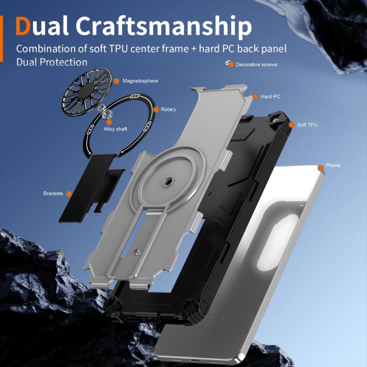 Funda MagSafe para Samsung Galaxy S25 Edge 5G, a prueba de golpes, con soporte metálico y eje (plateada)