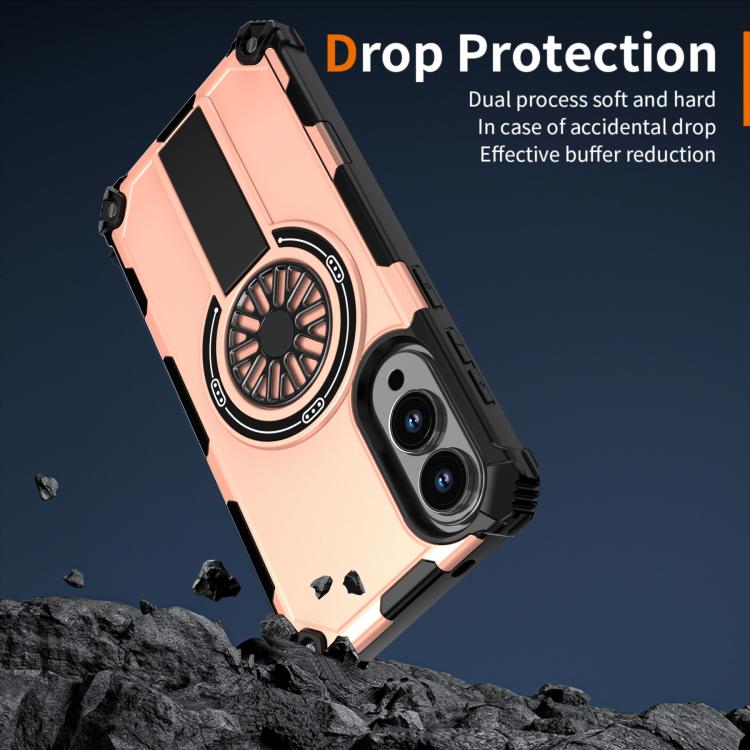 Funda MagSafe para Samsung Galaxy S25 Edge 5G con soporte metálico, a prueba de golpes y función atril (oro rosa)