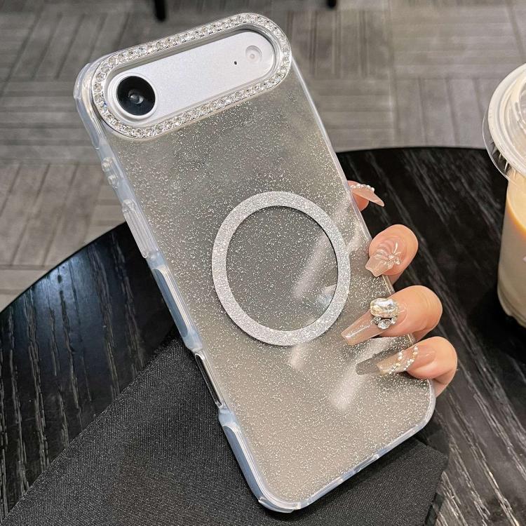 Funda MagSafe semitransparente con purpurina y bordes redondeados para iPhone Air (negra)