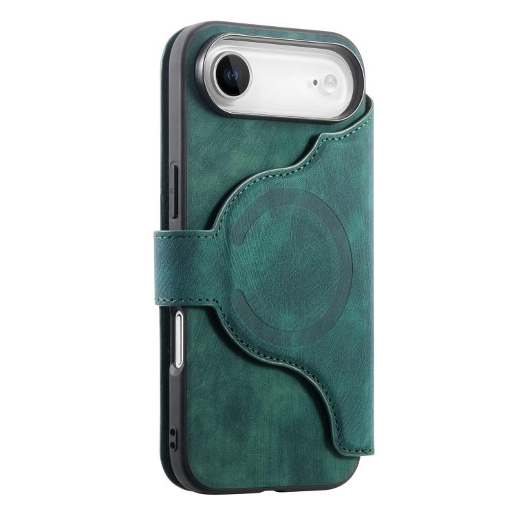 Funda Neo MagSafe RFID antirrobo con cremallera para iPhone Air, funda de cuero retro (verde)