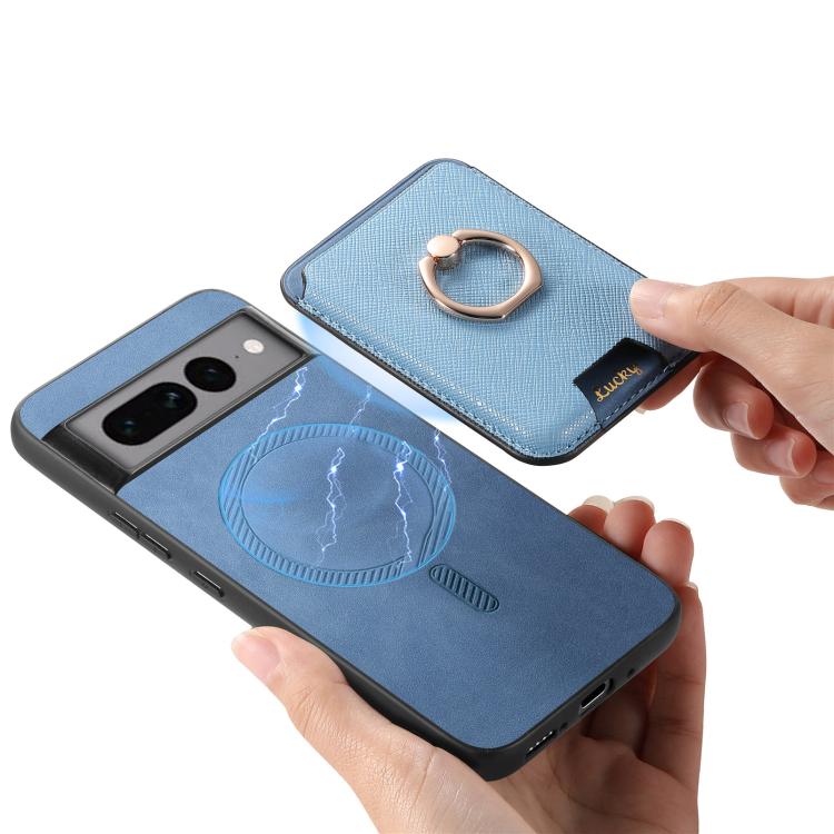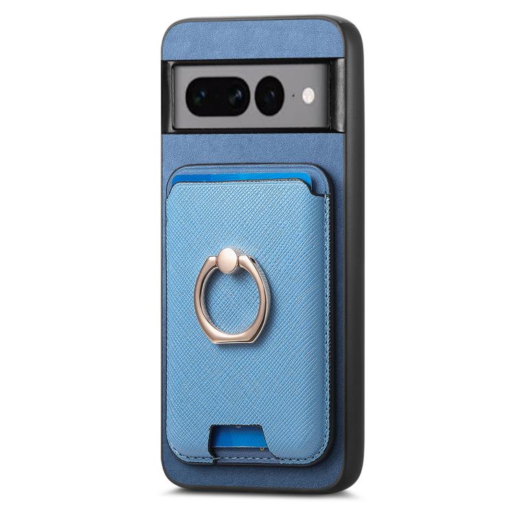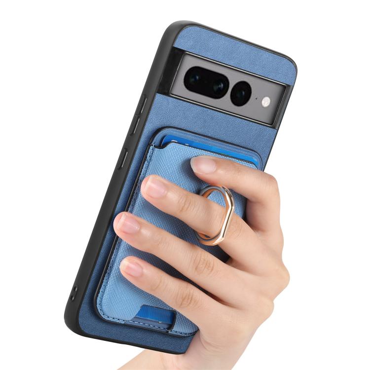 Funda para Google Pixel 7 Pro con Ranuras para Tarjetas y Anillo de Cuero Diseño Retro (Azul)