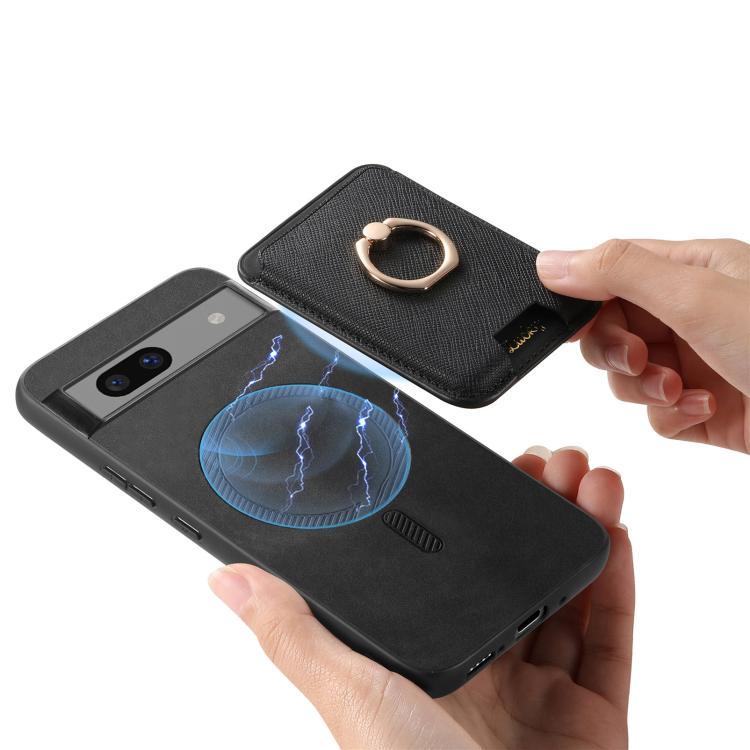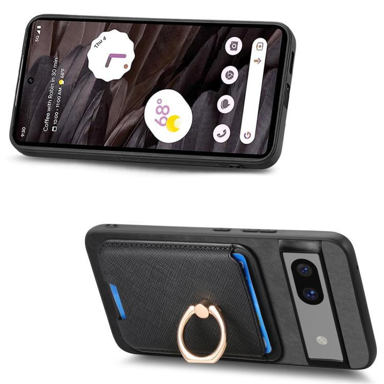 Funda para Google Pixel 7A con Ranuras para Tarjetas y Anillo de Cuero (Negro)