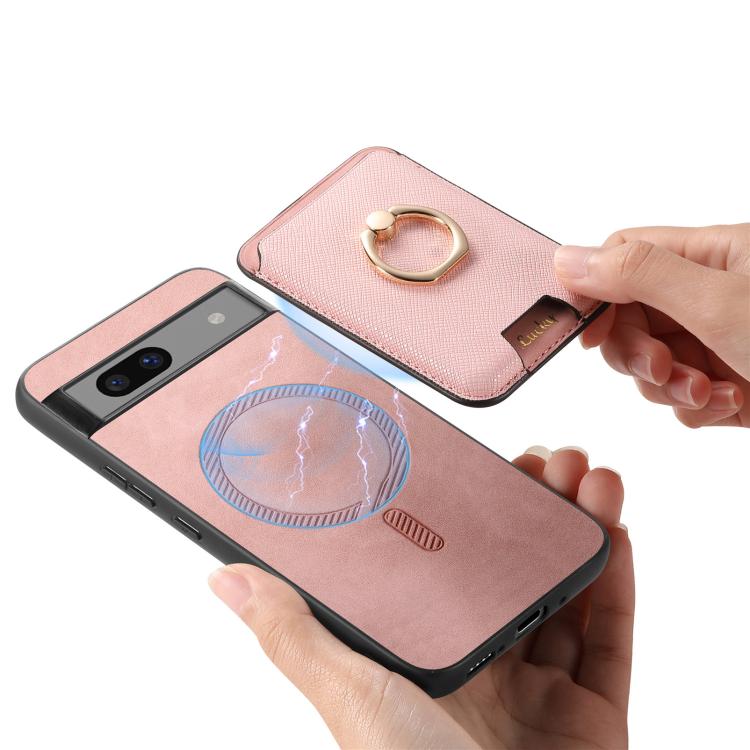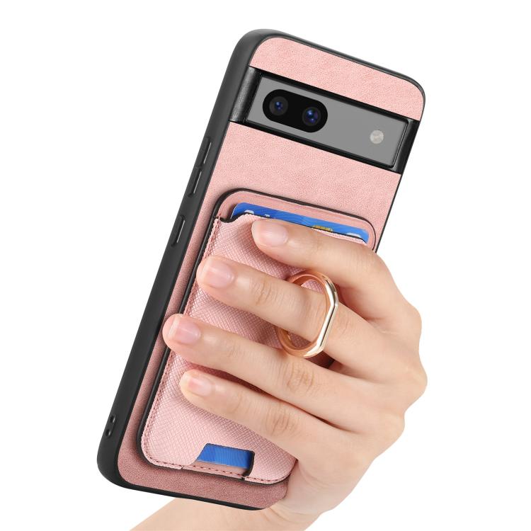 Funda para Google Pixel 7A con Ranuras para Tarjetas y Anillo de Cuero Retro Cruzado (Rosa)