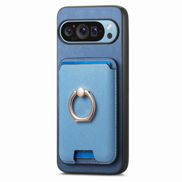 Funda para Google Pixel 9A con Ranuras para Tarjetas y Anillo de Cuero (Azul)