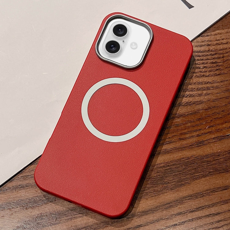 Funda para iPhone 16 Diseño Textura Cuero Cobertura Total Magsafe (Roja)