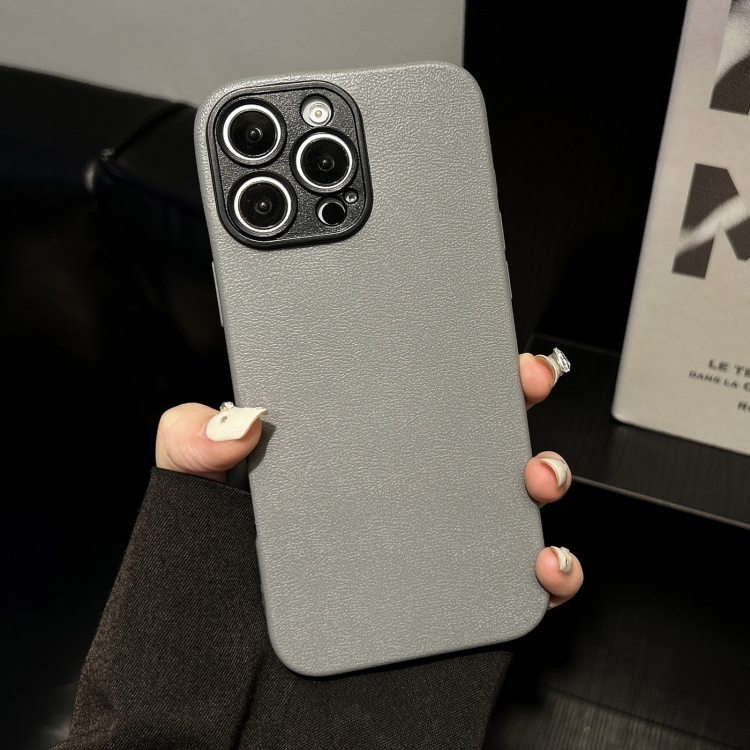 Funda para iPhone 16 TPU con Marco de Lente y Textura de Lichi (Gris)