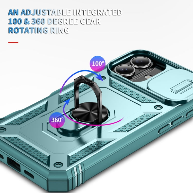 Funda para iPhone 16 soporte deslizante TPU y PC (Verde)