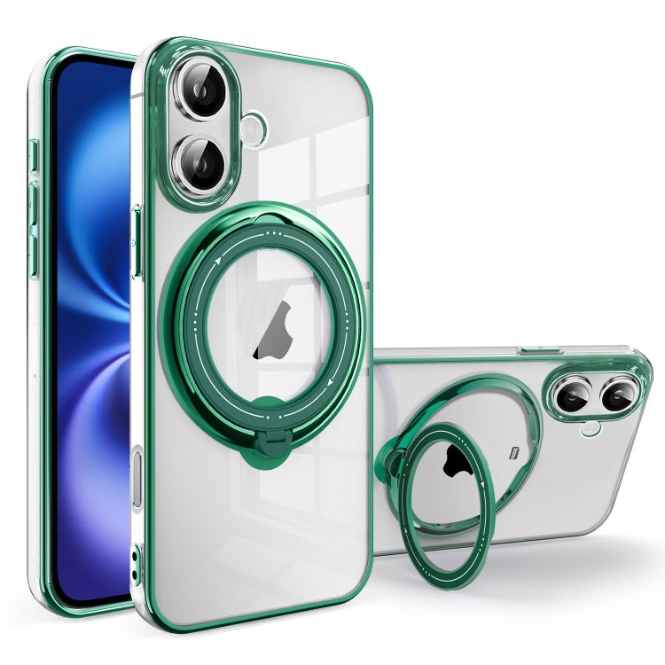 Funda para iPhone 16 Soporte Giratorio 360 Grados Galvanoplastia Prueba de Golpes (Verde Oscuro)