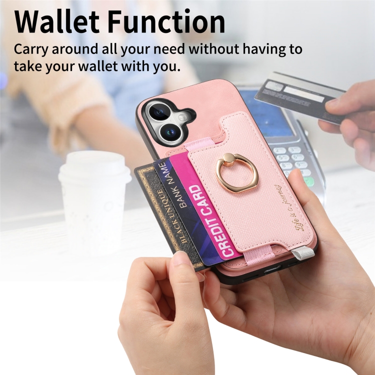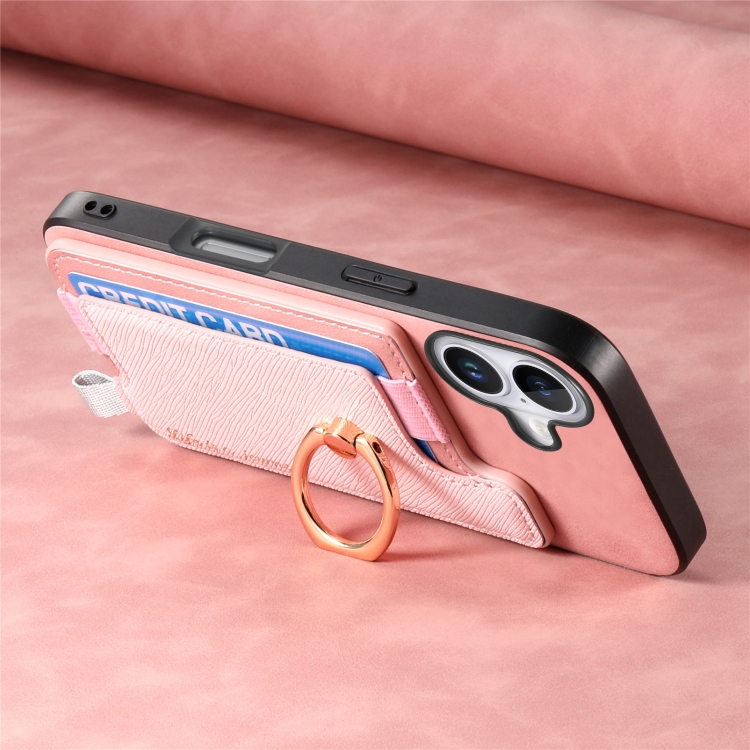 Funda para iPhone 16 con Tarjetero y Anillo de Cuero Diseño Retro Magsafe (Rosa)