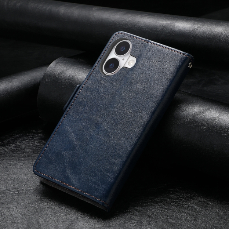 Funda para iPhone 16 Neo Splicing con Hebilla Magnética Doble Funda de Cuero (Azul)
