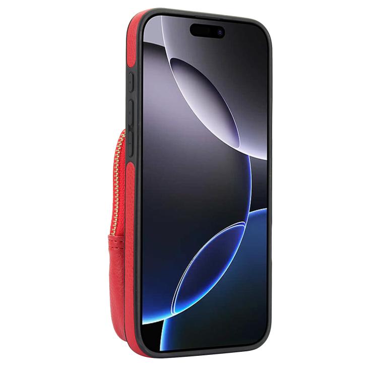 Funda para iPhone 16 Pro Awquer con Cremallera Cruzada Cartera Piel de Lichi (Rojo)