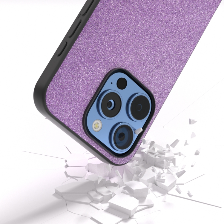 Funda para iPhone 16 Pro Marco Negro Purpurina Prueba de Golpes (Morado)