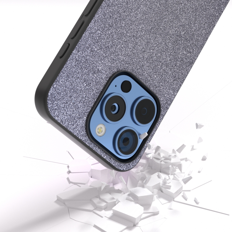 Funda para iPhone 16 Pro con Marco Negro y Purpurina a Prueba de Golpes (Negra)