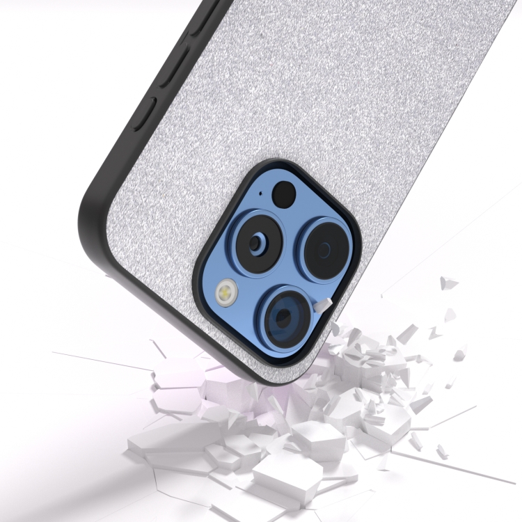 Funda para iPhone 16 Pro con Marco Negro y Purpurina a Prueba de Golpes (Plateada)