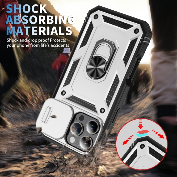 Funda para iPhone 16 Pro Soporte Deslizante TPU y PC (Blanco y Negro)