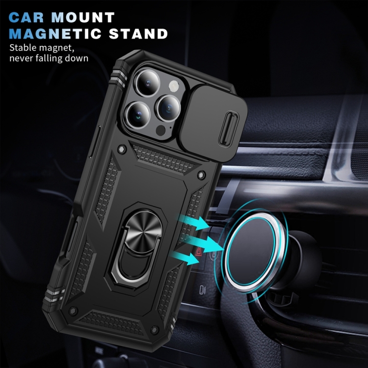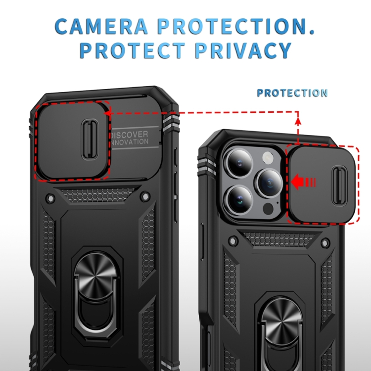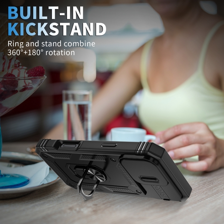 Funda para iPhone 16 Pro Soporte Deslizante TPU y PC (Negro)