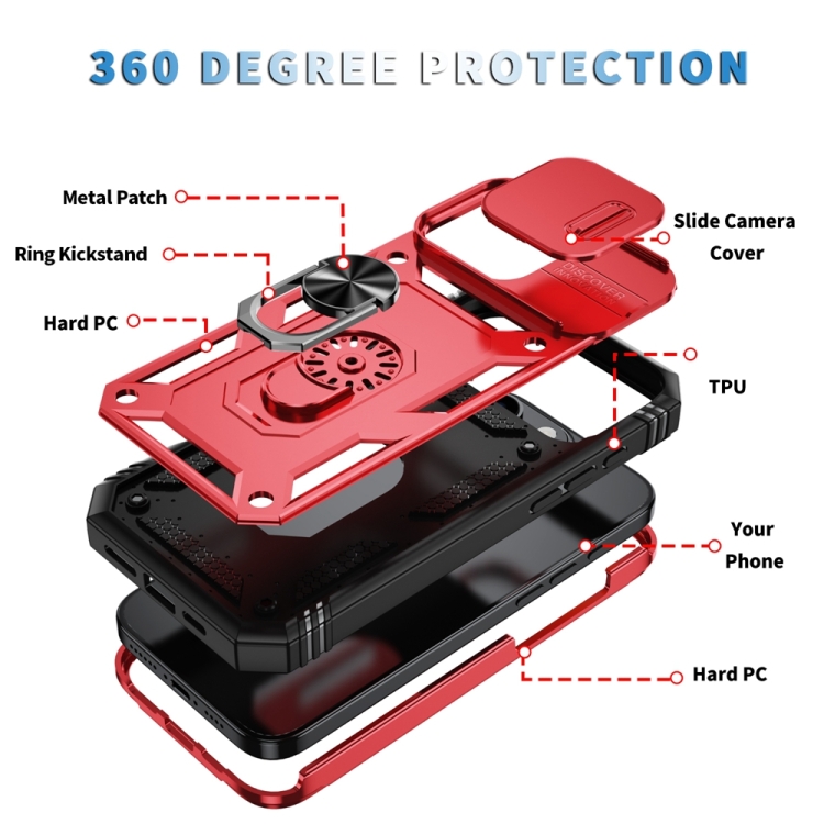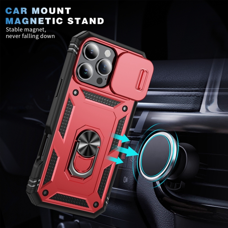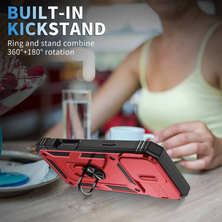 Funda para iPhone 16 Pro TPU y PC con Soporte Deslizante (Rojo y Negro)