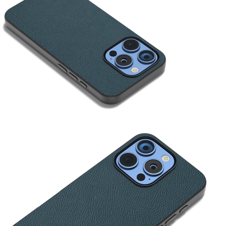 Funda para iPhone 16 Pro Max Abeel Piel Auténtica Textura de Lichi para PC (Verde)