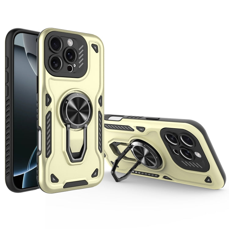 Funda para iPhone 16 Pro Max Soporte Giratorio Metal Carcasa Magnética TPU PC (Beige)