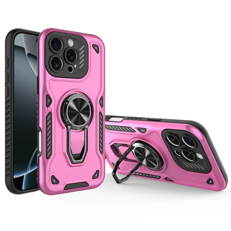 Funda para iPhone 16 Pro Max con Soporte Giratorio de Metal y Carcasa Magnética de TPU y PC (Rosa y Morado)