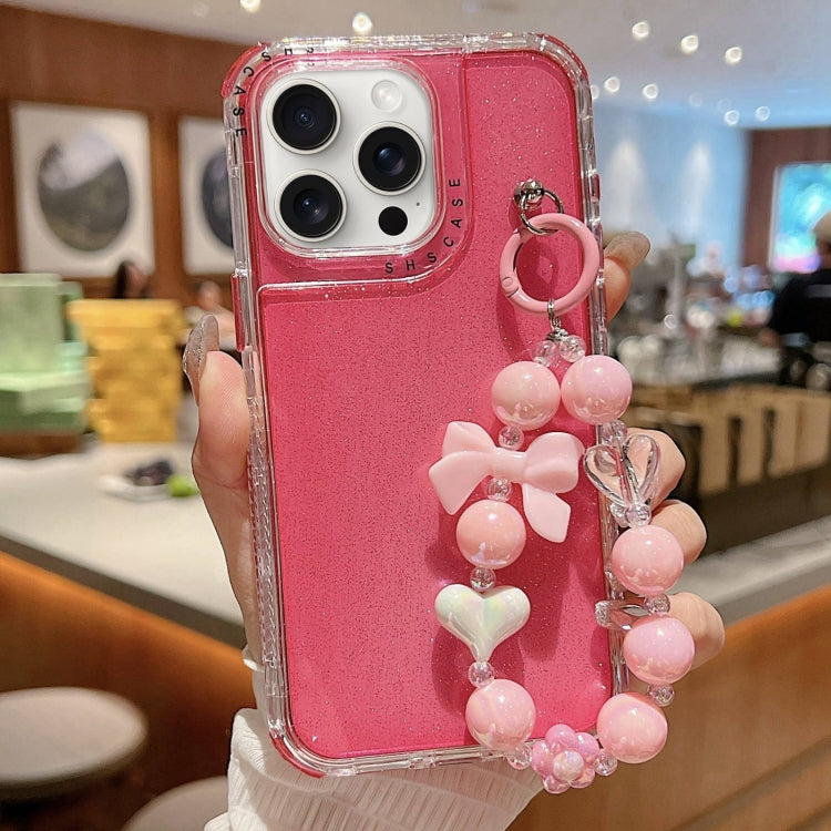 Funda para iPhone 16 Pro Max TPU PC Lentejuelas Brillantes Cobertura Total Pulsera (Roja)
