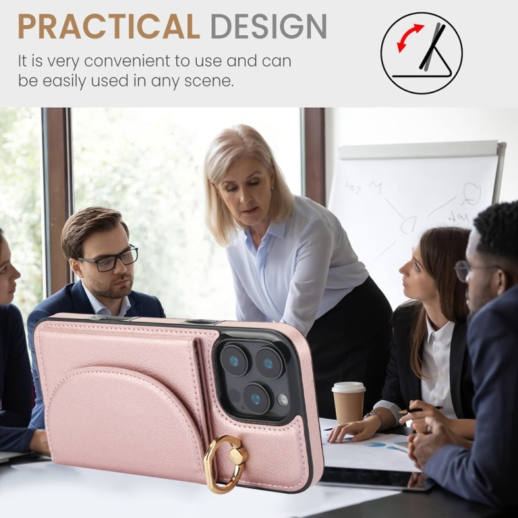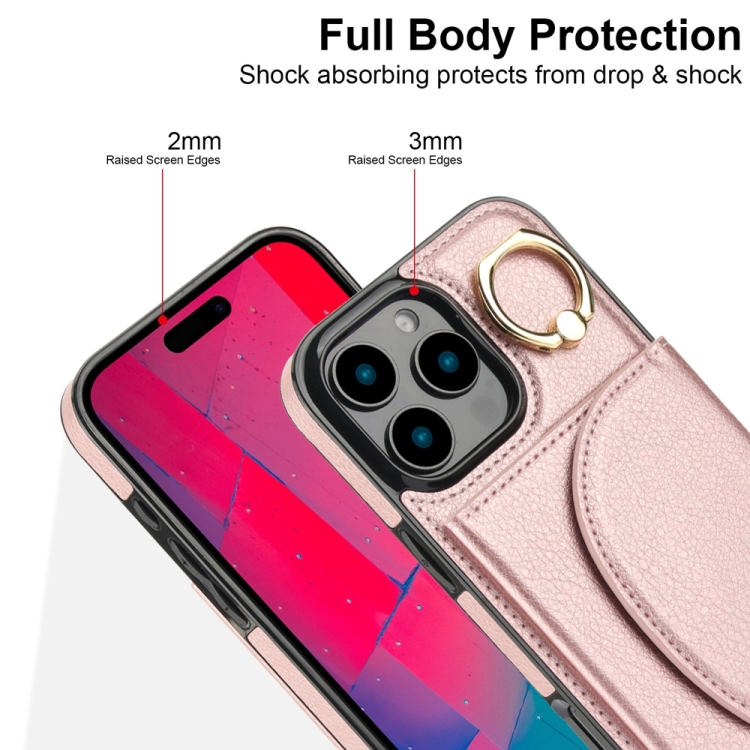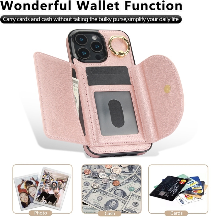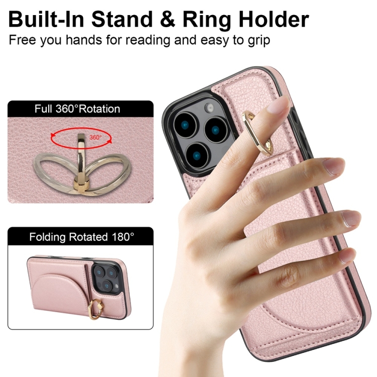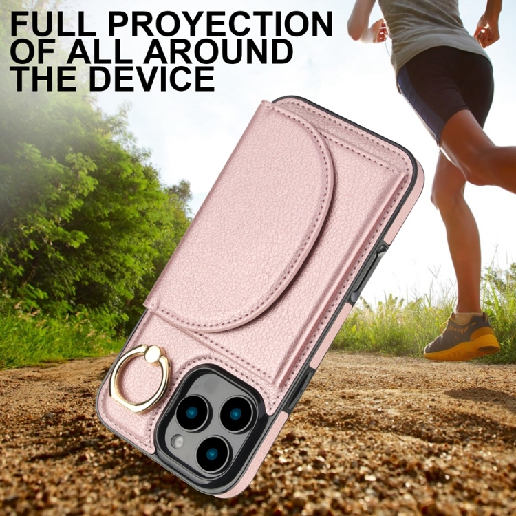 Funda para iPhone 16 Pro Max Ym007 con Tarjetero y Anillo (Oro Rosa)