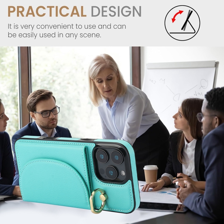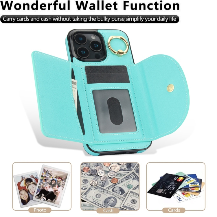 Funda para iPhone 16 Pro Max Ym007 con Tarjetero y Anillo Tacto Suave (Verde)